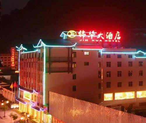 武陵源錦華大酒店是一家按國家四星級標(biāo)準(zhǔn)、2009年5月新修建成的豪華旅游度假酒店,地理位置優(yōu)越,位于武陵源汽車站旁.酒店集觀光旅游、度假、商務(wù)會(huì)議、品嘗土家美食等多功能為一體,酒店建筑融合張家界地區(qū)的民族風(fēng)情和建筑文化,是張家界地區(qū)最有土家風(fēng)情的星級酒店之一。 武陵源錦華大酒店安裝了數(shù)控中央空調(diào)系統(tǒng)、空氣源熱水系統(tǒng)。24小時(shí)供應(yīng)冷熱水。 武陵源錦華大酒店擁有客房100間,其中套房3間、標(biāo)準(zhǔn)間96間、單人間1間,客房內(nèi)配有液晶電視、閉路電視和寬帶接口;餐要包廂8個(gè)、豪華包相一個(gè)、極具當(dāng)?shù)靥厣摹盎鹂游荨卑鼛?個(gè)、中餐宴會(huì)廳可同時(shí)容納300人就餐。酒店還配備一個(gè)高標(biāo)準(zhǔn)多功能的現(xiàn)代化會(huì)議室,安裝有電視電話會(huì)議系統(tǒng),可以舉行各種類型的中小型會(huì)議。