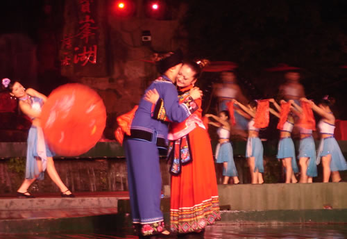 姑娘出嫁,為女人一生中最大的喜事,本應(yīng)充滿幸福、歡樂的氣氛。然而,舊時(shí)湘西、湘南、鄂西、川西(成都等地)、黔東(銅仁、凱里一帶)諸地,卻流行著一種與之完全相反情調(diào)的古老婚俗——“哭嫁”。也就是在姑娘“出閣”之前,不但新娘本人哭得很傷心,像淚人一般;而且,新娘的母親、姐妹以及姑媽、姨媽、舅媽及其他交往較多的女友,都要陪著新娘哭。湘西土家族哭嫁的風(fēng)俗尤為普遍、濃厚,不但哭嫁的時(shí)間較長(少則十來天,多達(dá)個(gè)把月),而且哭嫁歌也保存得古樸、完整。 姑娘出嫁為什么要哭?哪有那么多的東西可哭?這是一種蘊(yùn)含甚為豐厚的人生禮俗,也是一種饒有興趣的婚俗事象。 俗話悅:“人不傷心不落淚!惫媚锍黾拗砸蓿且?yàn)樵谂f式婚姻制度下,女孩(尤其是勞苦大眾家庭的女孩)總是作為犧牲品“拋”(賣)給夫家的,她們的身心受到極大傷害。因此,湘西等地的女孩在出嫁之前要哭泣,要呼號(hào),哭嫁歌就是感情發(fā)泄的最好表現(xiàn)方式。 哭嫁的源起 哭嫁的風(fēng)俗,不知道起源于什么時(shí)候。戰(zhàn)國時(shí)期,趙國的公主嫁到燕國去作王后,她的母親趙太后在臨別時(shí)"持其踵,為之泣,祝曰,必勿使返。"大約就是后來長盛不衰的哭嫁風(fēng)俗的濫觴了。 這種風(fēng)俗,直至清末還盛行于四川農(nóng)村中,隨地區(qū)變化而大同小異。解放前,聽老人們說,早些時(shí)候,沒有嫁而不哭的人家。如果出現(xiàn)嫁而不哭的姑娘,也會(huì)被鄰里看作沒有教養(yǎng)的人,傳為笑柄;相傳有出嫁姑娘不哭而遭母親責(zé)打的事,這位母親當(dāng)然算得上是入流導(dǎo)演了。 舊時(shí)宣講故事中,有花轎臨門,父親強(qiáng)令哭《迎風(fēng)罵媒歌》的情節(jié),可知哭嫁是有歌詞的,帶有表演性質(zhì),原是用來渲染氣氛,以悲襯喜;不過,因?yàn)榛橐鍪前k的,真哭真罵的也不會(huì)少。 抗日戰(zhàn)爭(zhēng)后期,風(fēng)氣較開,哭嫁之風(fēng)已不盛行,而老人們卻還在津津樂道,哭的方式是,從婚期前一個(gè)月的首日起,入黃昏,姑娘訴哭約一個(gè)小時(shí),其聲嗚嗚。十天以后,她的母親加入"陪哭";又十天以后,她的祖母加入陪哭。這家沒有諸姑姊妹,人們說,如果有的話,也應(yīng)當(dāng)加入陪哭行列的。 哭嫁在川西叫"坐堂"。清代吉道人《味蔗軒隨筆·坐堂詞》云:"婚姻之禮,各省風(fēng)俗不同。然酌禮準(zhǔn)情,各省亦大同小異。凡男家娶婦先賦之詩,謂之'催妝';女家親串頌女之詞,謂之'坐堂'。坐堂者,女當(dāng)喜期將近之先數(shù)夕,其諸姑伯姊,置酒為女祖餞,各述吉祥之詞,以為頌美,女則申己之意以答。女左右更有少女,則隨而嫻習(xí)者也。其詞要多鄙俚,然有音韻凄清,風(fēng)格遒勁,如古歌古謠者。羅江明府蔡,微服巡查鄉(xiāng)里,一日行至某處,值有女子歸,諸娣姒咸以諛詞頌女,女申意以答。忽風(fēng)吹句入耳,詞曰:'鳳凰落在桌子上,哪個(gè)女兒肯離娘'。一字一轉(zhuǎn),音韻凄其,誰謂天籟之鳴,不在愚夫愚婦耶!"云云。吉道人姓周名際唐,成都人。吉道人記得明明白白,可惜他只記了一句哭嫁詞,難窺全貌。好在舊時(shí)坊間叢刻中有《訓(xùn)女哭嫁》一種,可見一斑。這本小書的目錄有《閨聲哭》、《娘訓(xùn)女》、《嫂哭妹》、《哭爹媽》、《哭哥嫂》、《花轎到屋哭》、《哭叔爺》、《哭兄弟》、《哭外公外婆》、《哭舅爺》、《拜香火哭》等等,編次有點(diǎn)凌亂,似乎隨手所記,未經(jīng)文人之手。遙想《詩》十五國風(fēng)未刪之時(shí),大約也不過如此吧! 閨聲哭 娘聽后園鳥雀驚,要聽房中女兒聲。 我娘當(dāng)門苦葛藤,手攀苦葛訴苦情。 我娘苦情苦過了,女兒苦情才起根。 ............ 桔子開花葉子青,陽雀開聲我開聲。 新打銅盆才裝水,新打剪刀兩面青。 娘不開口我開口,娘不開聲我開聲。 當(dāng)門一根木蓮樹,目連樹上掛卷經(jīng)。 一本經(jīng)書背完了,未見我娘來開聲。 虧了我娘睡得穩(wěn),爹媽眼淚貴如金。 哭爹媽 月亮彎彎照華堂,女兒開言叫爹娘。 父母養(yǎng)兒空指望,如似南柯夢(mèng)一場(chǎng)。 一尺五寸把兒養(yǎng),移干就濕苦非常。 ............ 勞心費(fèi)力成虛恍,枉自爹娘苦一場(chǎng)。 哭兄弟 黑漆茶盤烏木頭,姐姐離娘弟不留。 留到姐姐吃你飯,留到姐姐穿你衣。 兄弟當(dāng)家掙家忙,嫁了姐姐買地方。 上頭買齊潼川府,下頭買齊遂寧鄉(xiāng)。 ............ 這個(gè)本子所記是川北的歌詞,以前所見的是川南,吉道人所記的是川西,川東,大約也不會(huì)大異的。遺憾的是,該書所記哭嫁詞雖有"只怨媒人莫良心"等語,卻沒有列出"罵媒專目,大約是怕媒人太難堪了吧! 其實(shí),罵媒是哭嫁中必不可少的節(jié)目,也是最具反抗色彩的哭嫁歌詞。舊社會(huì),婦女無婚姻自由可言,由于"三從四德"的束縛,平時(shí)對(duì)于自己的終身大事幾乎不能置一詞,全由媒人和父母擺布;因此,這登花轎之前的"罵媒",便是難得的發(fā)泄機(jī)會(huì)。這早已反映在戲曲和民間說唱等藝術(shù)之中。 以前,川劇《柳蔭記》有《英臺(tái)罵媒》一折,英臺(tái)罵媒人,言詞激烈,聲色俱厲,充分表現(xiàn)了祝英臺(tái)剛烈的性格和反封建精神。她罵道:"提媒婆,更恨她,胡言亂語嘴喳喳......唯愿你,房屋遭火化,田園水推沙。"但這場(chǎng)戲現(xiàn)在卻被刪掉了,五六十年代還有的,全