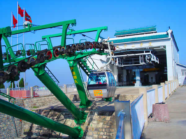 湖南武陵源索道有限公司成立于1995年12月7日,武陵源區(qū)人民政府和香港安達國際度假樂園(張家界)有限公司簽約,是由香港安達國際有限公司投資的外商獨資企業(yè)。1996年6月動工興建天子山索道,1997年5月正式對外營運。天子山索道是單線循環(huán)式脫掛抱索器客運索道,全部設(shè)備自奧地利Doppelmayr公司進口。設(shè)計水平線1960m,斜線長2084m,兩端站高差692m。配單線自動循環(huán)車廂41個,每車廂載6人,運速5m/s,每小時單向運量900人。索道動力電,采用雙電源;配備有應(yīng)急備用柴油機,用于停電或發(fā)生設(shè)備事故時緊急疏散游客。
