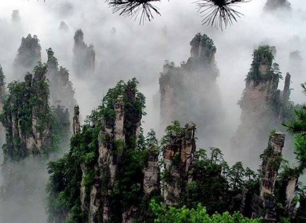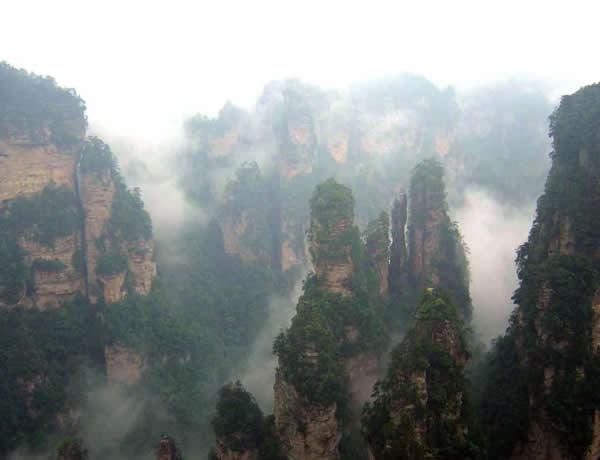 張家界神堂灣 坐落在天子山上的神堂灣,自古以來蒙上一層神秘的色彩,其深不可測,其神不可言傳。它是一個天然的半圓形天坑,面積達10余公頃,三面懸崖峭壁,灣內(nèi)深不見底,神秘莫測;有時霞光萬道,瑞氣干條;有時又陰風慘慘,霧雨綿綿。更令人驚嘆的是,只要你靠近潭邊,耳邊便隱隱約約響起一片鳴鑼擊鼓、人喊馬嘶的聲音,似有千軍萬馬在鏖戰(zhàn)神堂灣,位于湖南省桑植縣(張家界內(nèi)),天子山的神秘禁地,為一桶形深谷,四圍石峰如屏,深 約600余米,谷底有深潭,終日云霧彌漫,猶聽萬馬千軍嘶鳴之聲。神堂灣長期與世隔絕,傳說是神仙聚會的地方。這里有著一望無際的原始森林,為整個神堂灣鋪上一層厚厚的綠氈。在這里還有世界上罕見的白蛇,體長1-1.5米左右,形似一根軟玻璃棒。如果在這里點燃篝火,火一點燃,火花上頭便冒起一縷又粗又濃的白色煙霧,順著神堂溪向谷中漂去。溪水平則煙平,水直則煙直。當溪水曲折往復,白色的煙霧也隨之往復曲折,猶如兩條白龍,騰飛于彎彎曲曲的山谷之中。