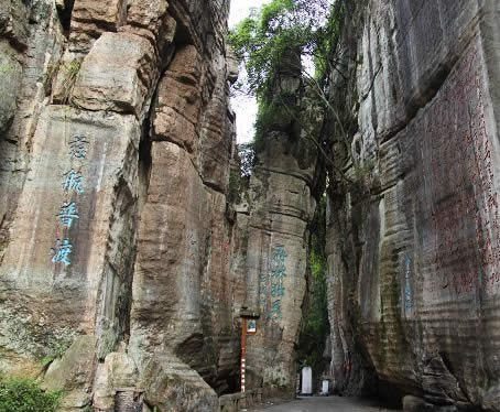 清嘉慶年間辟有洗心池!安欢T”如斧斫神劈,為石林天成,石林壁上鐫滿歷代文人的詩(shī)詠。這里古柏參天,藤蘿倒掛,環(huán)境幽美。有壁石如書的萬(wàn)卷書者,有嵐霧束腰的七級(jí)青石培英塔。凝神盤坐的南海觀音是一塊天然造型的巨石,惟妙惟肖。觀音巖周圍,環(huán)繞著具有明清風(fēng)格的地藏庵、嵩山堂、水府閣等建筑物,布局靈巧緊湊,主題鮮明,因勢(shì)造景。景點(diǎn)間曲徑迂回,迷趣深?yuàn)W,稱八陣圖。景區(qū)內(nèi)的河灘上有兩處溫泉,氤氳縈繞,水溫適宜(41℃),水質(zhì)良好,能治療多種疾病?h城人民經(jīng)“不二門”前往溫泉就浴者絡(luò)繹不絕,現(xiàn)又增建了石牌坊和民俗博物館。