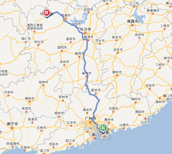 深圳去張家界自駕車線路圖全程高速):