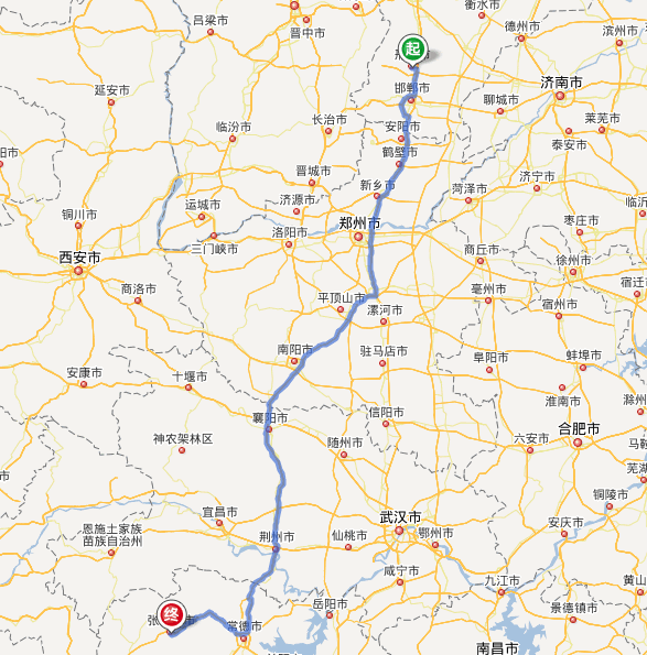 邢臺到張家界自駕車路線地圖(距離最短)