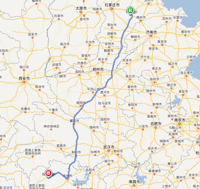 衡水去張家界自駕車線路圖全程高速):
