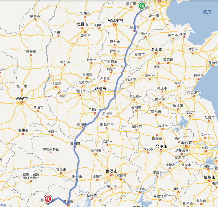 任丘去張家界自駕車(chē)線路圖全程高速):