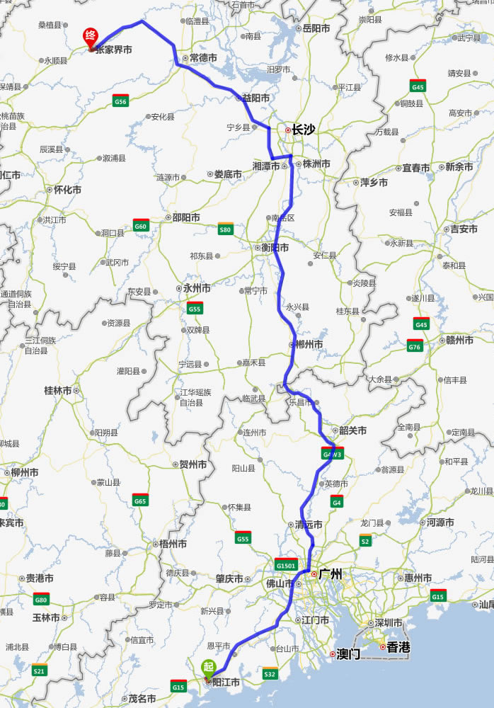 現(xiàn)在位置:張家界旅行社->交通指南->自駕車路線 -> 陽江到張家界旅游自駕車線路,陽江去張家界自己開車要多長(zhǎng)時(shí)間,有多少公里