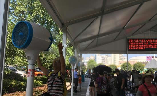 為更好的為游客防暑降溫,天門山景區(qū)特別在索道站、山門等候區(qū)增設(shè)大型遮陽棚,作為游客等候休息區(qū),并在等候區(qū)內(nèi)安裝數(shù)十個室外冷霧降溫風(fēng)機(jī)和直飲水點。