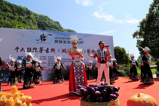 7月29日上午9點(diǎn)30分,由張家界市人民政府主辦,張家界市委宣傳部、市旅游和外事僑務(wù)委員會(huì)、市文體廣電新聞出版局、武陵源區(qū)人民政府承辦,黃龍洞景區(qū)協(xié)辦的“絕版張家界,最炫民族風(fēng)”張家界民俗活動(dòng)月第三場活動(dòng)在黃龍洞景區(qū)啟動(dòng),F(xiàn)場以土家人慶祝豐收的鼓舞拉開序幕,土家鼓舞歡悅的節(jié)奏,夸張的舞姿開場就吸引了幾千游人和當(dāng)?shù)厝擞^看。草根夫妻檔歌手,張家界“山水組合許勇、舒維亮麗的服飾,野性的嗓音……”以一首《我在高山唱》歌曲,征服現(xiàn)場游客,贏得雷鳴般的叫好聲。
