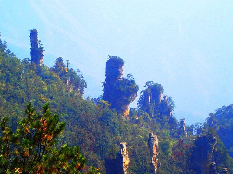 上 午: 旅游車前往中國第一個國家級森林公園——【張家界國家森林公園】(約40分鐘車程,門票245元+5元景區(qū)保險已含)。游覽大氧吧廣場(每立方厘米空氣中含8-10萬個負(fù)氧離子),登海拔1200米、張家界最大的凌空觀景臺——【黃石寨景區(qū)】(黃石寨可以乘索道上下,也可以徒步上下。如果選擇乘坐索道,單程65元/人、雙程118元/人自行購買)。黃石寨山頂千山萬壑盡收眼底,沿著山頂環(huán)寨游道行走,可欣賞到許多絕美的自然風(fēng)光,沿途有六奇閣、摘星臺、雙門迎賓、五指峰、霧海金龜、天然壁畫、黃石松、回音壁、九重壁等景點;