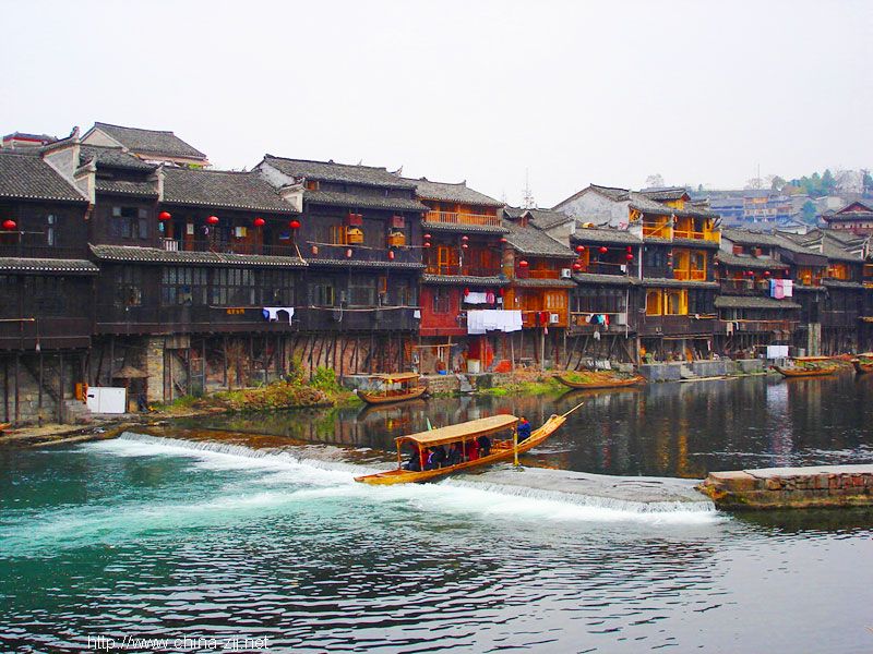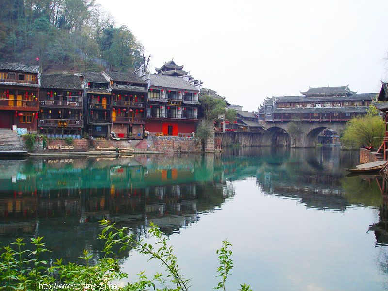 【鳳凰古城位于沱江之畔、群山環(huán)抱、關隘雄奇、碧綠的沱江依著城墻緩緩流淌,疊翠的南華山麓倒映江中,江中漁舟游船數(shù)點,山間暮鼓晨鐘兼鳴,懸崖上的吊腳樓輕煙裊裊,碼頭邊的浣紗姑笑聲朗朗,兩岸已有數(shù)百年歷史的吊腳樓更是別有一番風味;順水而下穿過虹橋一幅江南水鄉(xiāng)的畫面便展現(xiàn)于眼前--萬壽宮、萬名塔、奪翠樓……一種遠離塵世的感覺悠然而生;鳳凰--猶如“一幅濃墨淺彩的中國山水畫”】(游覽時間約3小時左右)